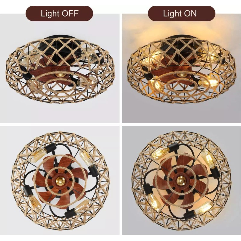 - 【Design】Our low profile ceiling fan with light is the natural handmade hemp rope cage design adds vintage style to your living space, and the bohemian rattan shade is designed to spread light evenly throughout the room, creating a beautiful light and warm atmosphere