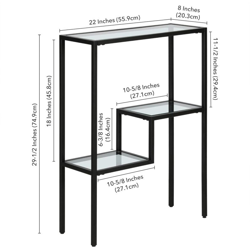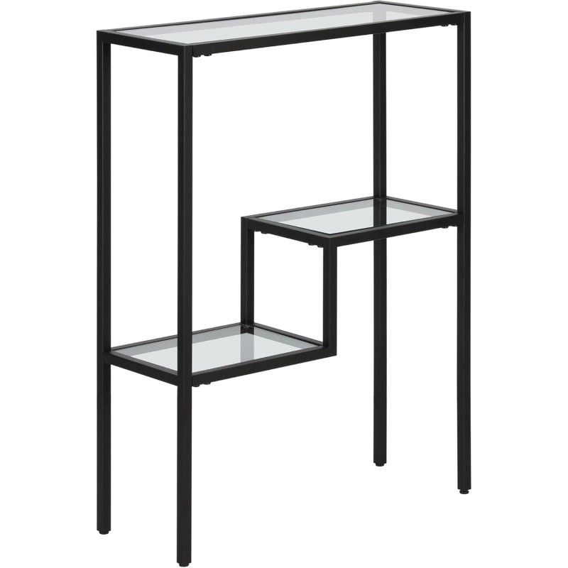 Bring streamlined design to your living room or entryway with this modern console table. Crafted of steel in a handcrafted finish, this console table features a tempered glass tabletop that provides a perfect platform for framed photos or a pair of stylish lamps. A two-tiered glass shelf adds visual interest and creates extra storage space wherever you need it most.