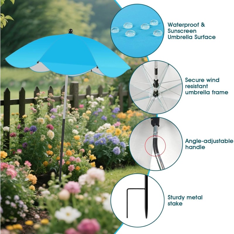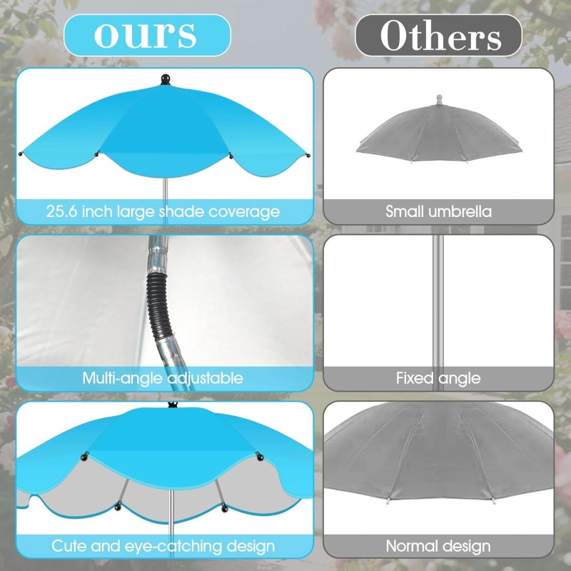 - Adjustable Angles Design:The spring on top umbrella arm can arbitrarily adjust the umbrella angle, ensuring perfect shade coverage for plants in all directions