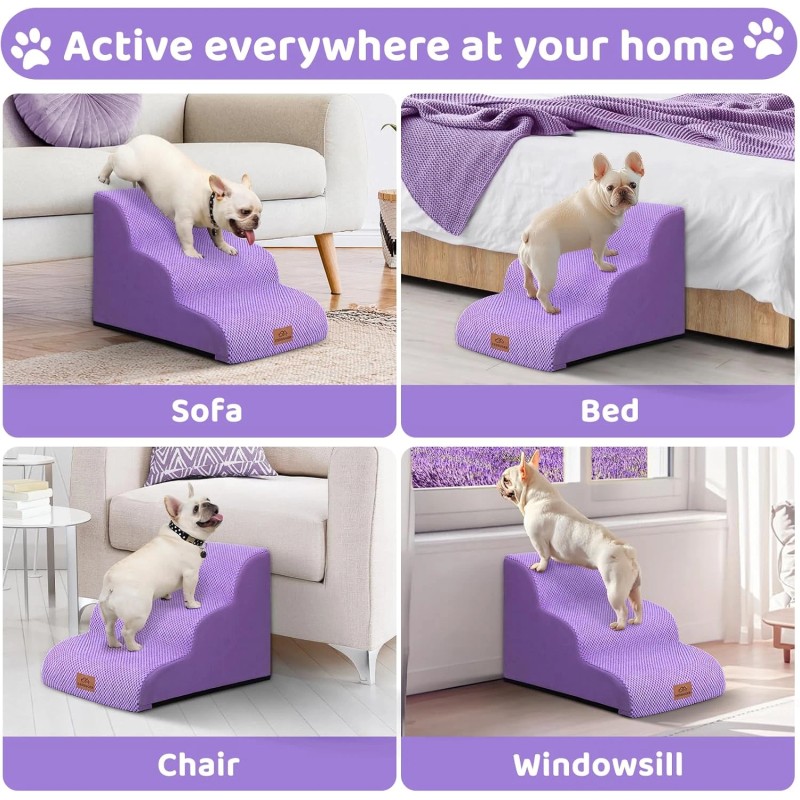 • Multi Sizes Fit Every Need: Zerbuger foam dog stair is not suitable for large dogs, please use it for pets under 50lbs! 3-steps are suitable for chairs and couches up to 20inch, 4-steps are suitable for high sofas, beds and window up to 25inch. Please confirm whether the size is suitable for your love pet first.