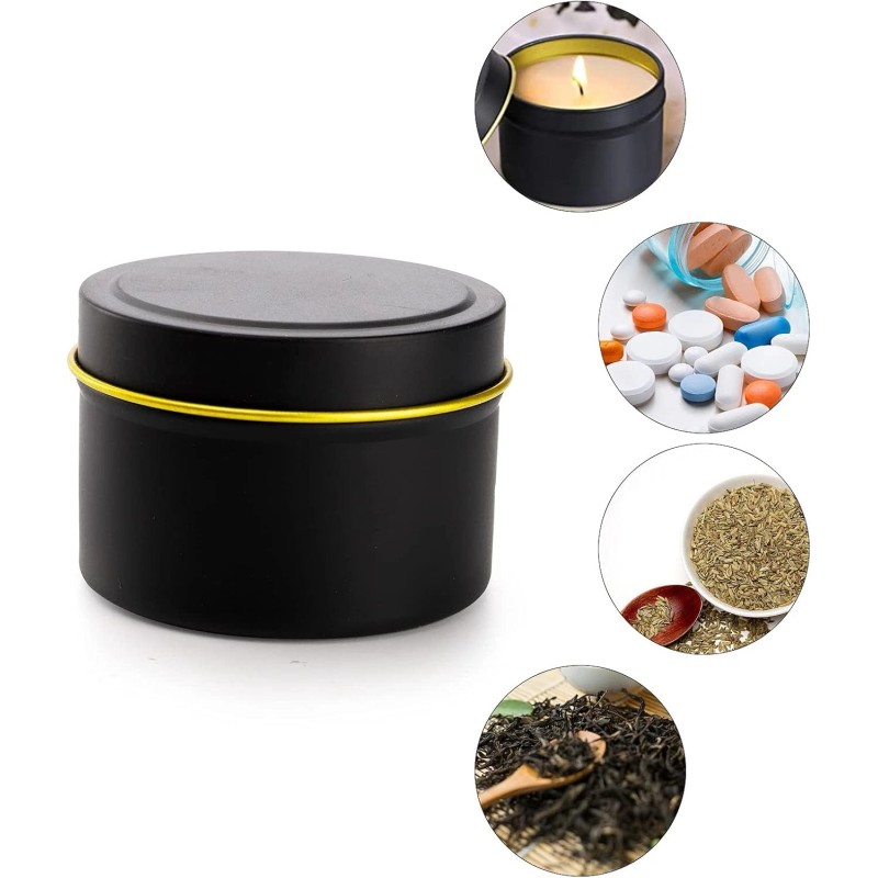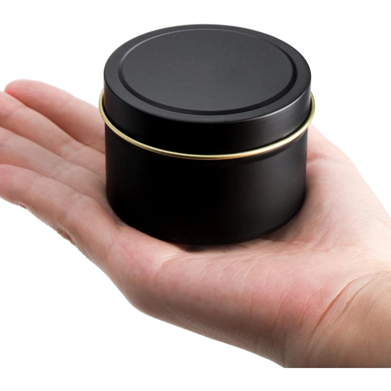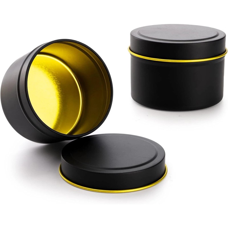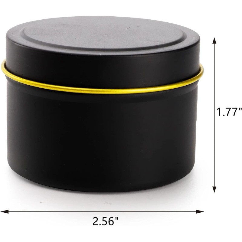 Great Design:These candle tins are black with a gold circle edges on the lid, which make it looks stylish and elegant, and easy to decorate. The candle tins are round, have no sharp edges and won't hurt your hand.
