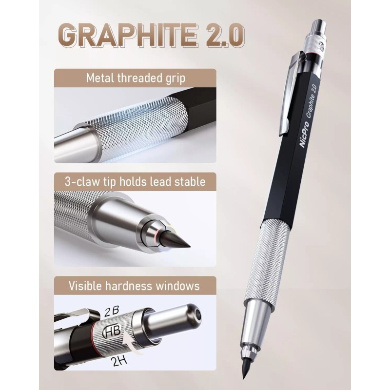 - Good Weight & Smooth Writing: The metal pencil are full-metal body provides nice weight balance for fatigue-free writing and drawing. There is a pencil sharpener inside the cap of the 2.0mm mechanical pencil and 2pcs extra lead sharpeners are provided, you can easily sharpen the pencil lead when it becomes dull and difficult to write.