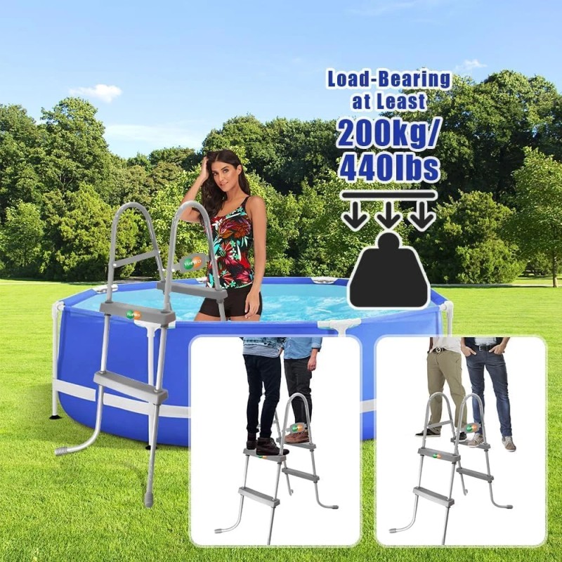 Suitable for above-ground swimming pools up to 36" high; Maximum loading capacity of 211kg/465lbs.