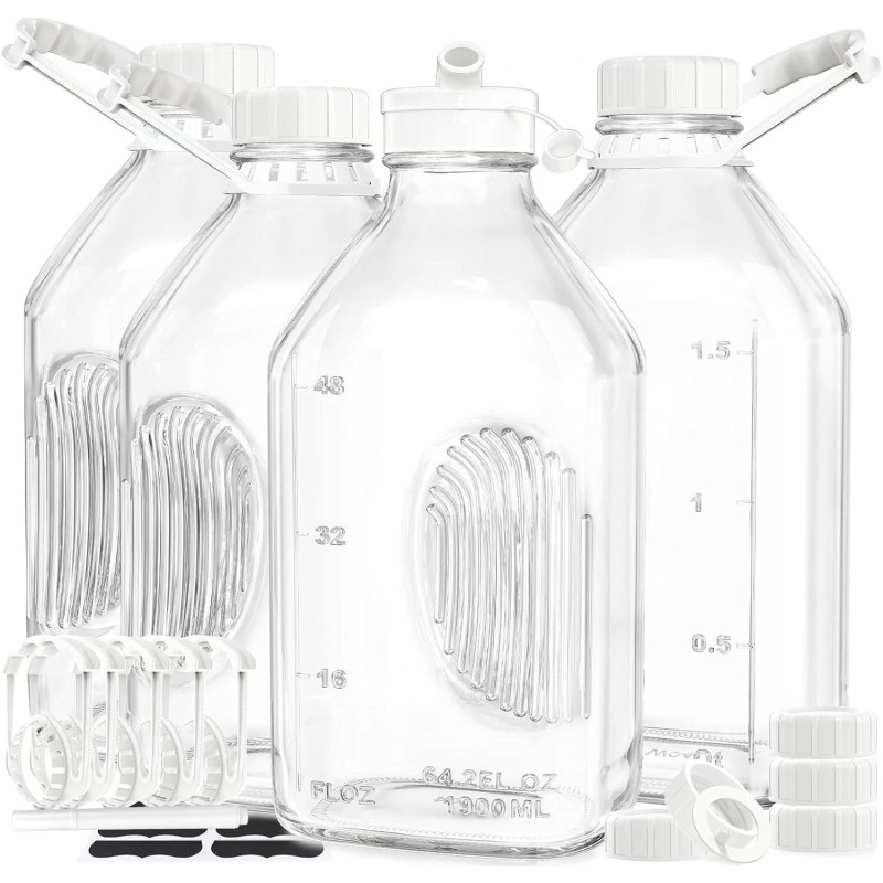 Does not apply 4-Pack 2 Qt Glass Milk Bottles with Handle and Airtight Reusable Lids - 64 Oz