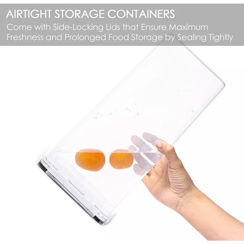 Food Grade MaterialMade of food grade material, they are BPA free. These pantry storage containers are not only safe but also durable, which will last a long time for use. | Airtight Lid Keep Your Food Safe & FreshNo longer worry about unpacked boxes that are not easy to pack and organize and the food deteriorate easily, these kitchen containers will help you to keep your food fresh, and they are easy to clean, which will save time for you to organize and clean. | Easy to Seal and Open LidsThese Containers come with Side-locking lids, when you want to open it, Just pull the buckles on the four sides, the lid will open, and you can easily take out the food from the opening. |
