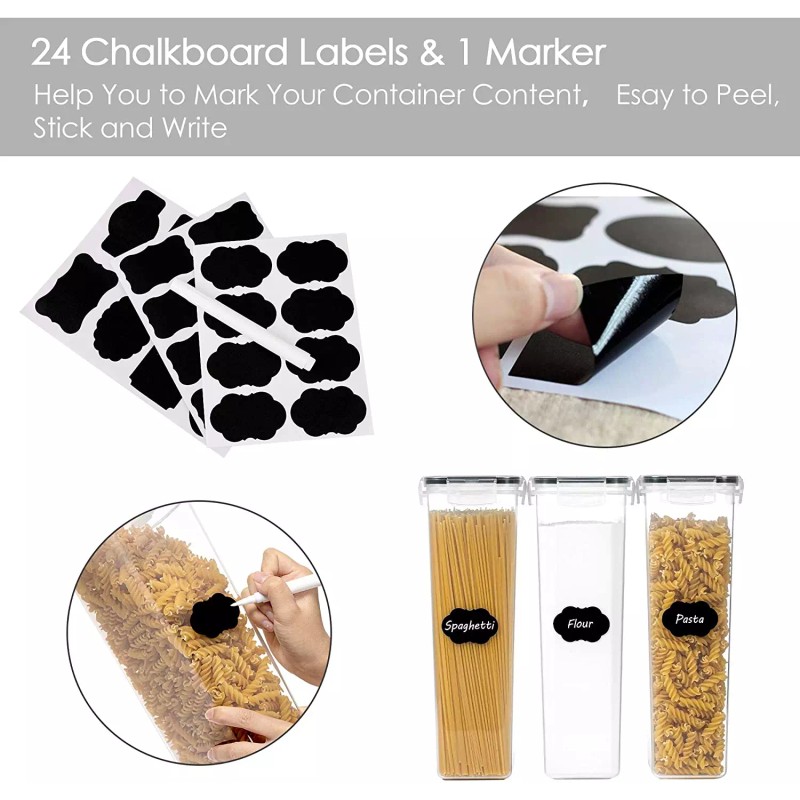- SUITABLE PANTRY ORGANIZATION AND STORAGE SET--- Our 4 pack air tight containers set comes with the same size, it includes 4 tall airtight food storage containers (2.8L / 2.46qt) and 24 labels. They will help you organize your pantry and kitchen neatly.