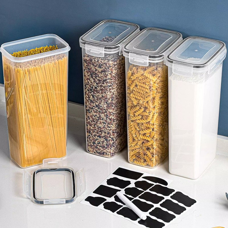 - SEAL SECURELY ---These plastic canisters with durable lids are leak proof. 4 Safe side-locking lids with black silicone gasket make these kitchen pantry containers airtight. It ensures that no air or water enters in, keeping your snacks food fresh and dry and preventing liquid food from spilling.