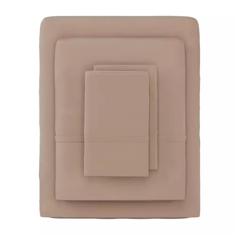 Does not apply 4-Piece Taupe Solid 75 Thread Count Polyester Queen Sheet Set