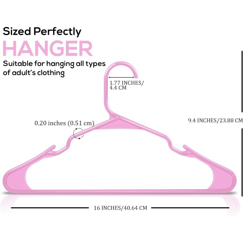 • Plastic Hangers Pack - Pack of plastic hangers for closet organizers and storage with each hanger measuring 16 x 9.4 x 0.2 Inches.