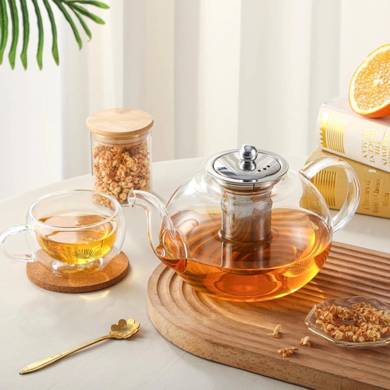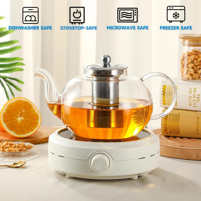 • MAKES A GREAT GIFT : The borosilicate glass teapot set makes a great gift to any tea lovers! The classic design, clean lines and perfect proportions blend perfectly with the kitchen countertop, making it perfect for drinking tea in various places such as hotels, restaurants, and homes. It is a heartwarming gift for family or friends on birthdays, Mother's Day, Christmas, weddings or housewarming.