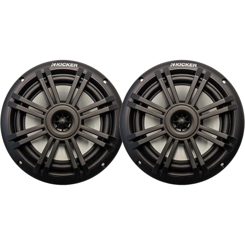 - PACKAGE BUNDLE INCLUDES: 2x Kicker BKM604W Kicker 6.5" 150 Watt Peak Power 2-Way Marine OEM Replacement Black Boat Audio Speakers