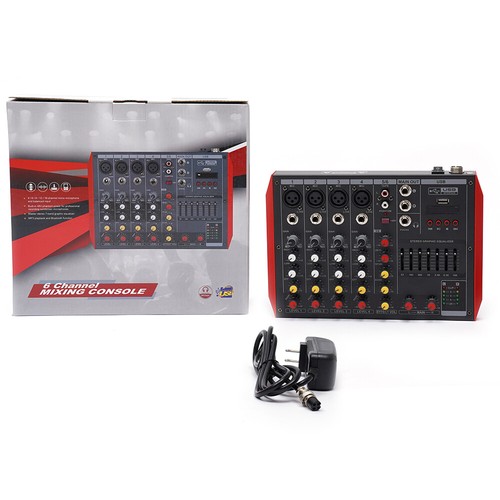 6 Channel Audio Mixer Bluetooth USB DJ Sound Board Mixing Console Live Studio