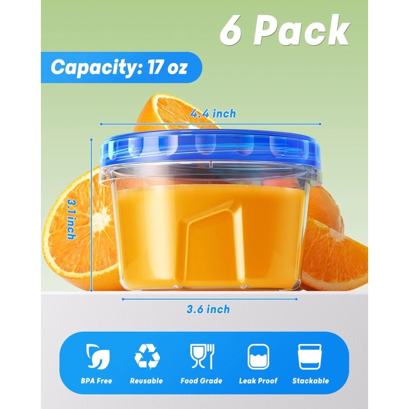 - Versatile Food Containers: Our freezer storage containers set includes 6 pack of 17 oz containers and lids. Great for storing liquids and messy foods like soups, overnight oats, stews, sauces, leftovers, pasta, snacks and cereals.