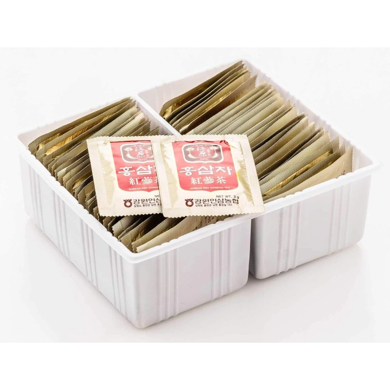 - A FAMOUS KOERAN TEA - Gangwoninsam Korean Red ginseng tea is a granular type of traditional Korean tea made with 6 year old red ginseng concentrate. It can be enjoyed by anyone.