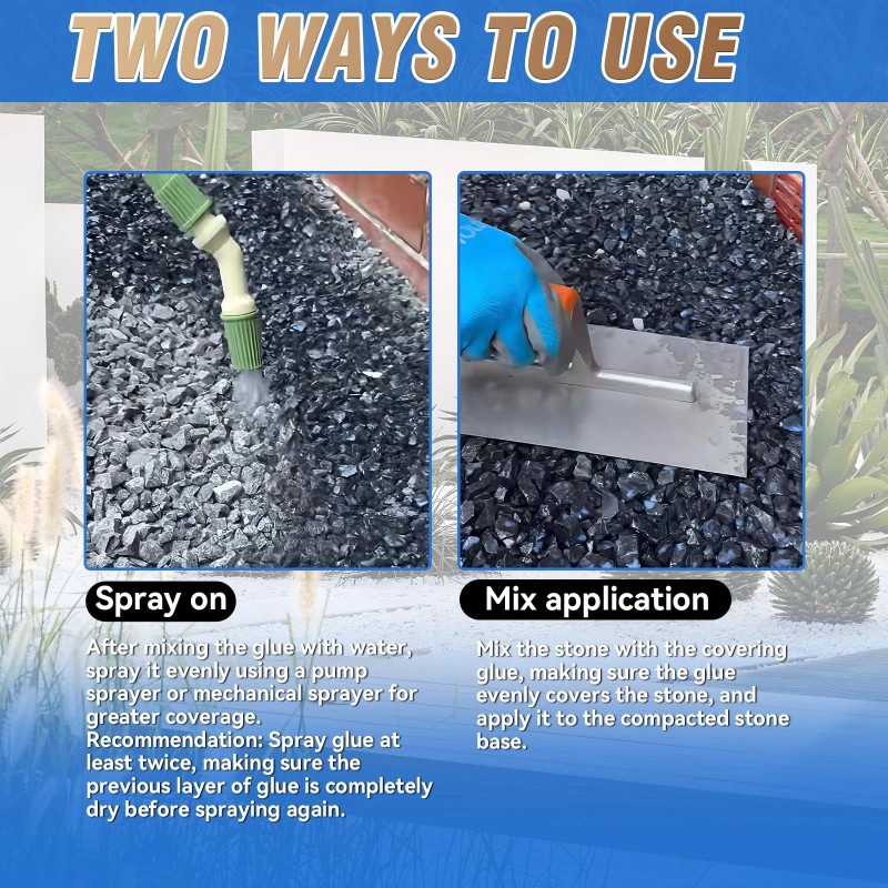 - LONG-LASTING PROTECTION: Our gravel glue can provide 12-24 months of protection. It effectively locks the mulch to prevent clutter and reduce landscape cleaning and maintenance, especially suitable for inclined surfaces and areas where water flows easily, helping you create a more worry-free and neat yard environment