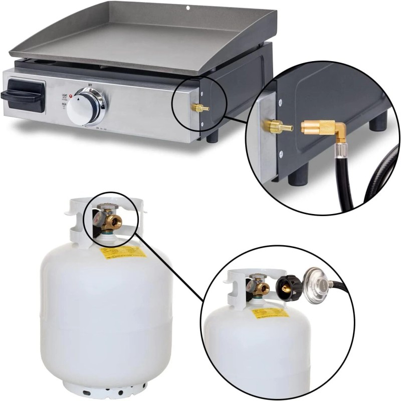 6Ft Propane Regulator Hose with Elbow Adapter for 17" & 22" Griddles