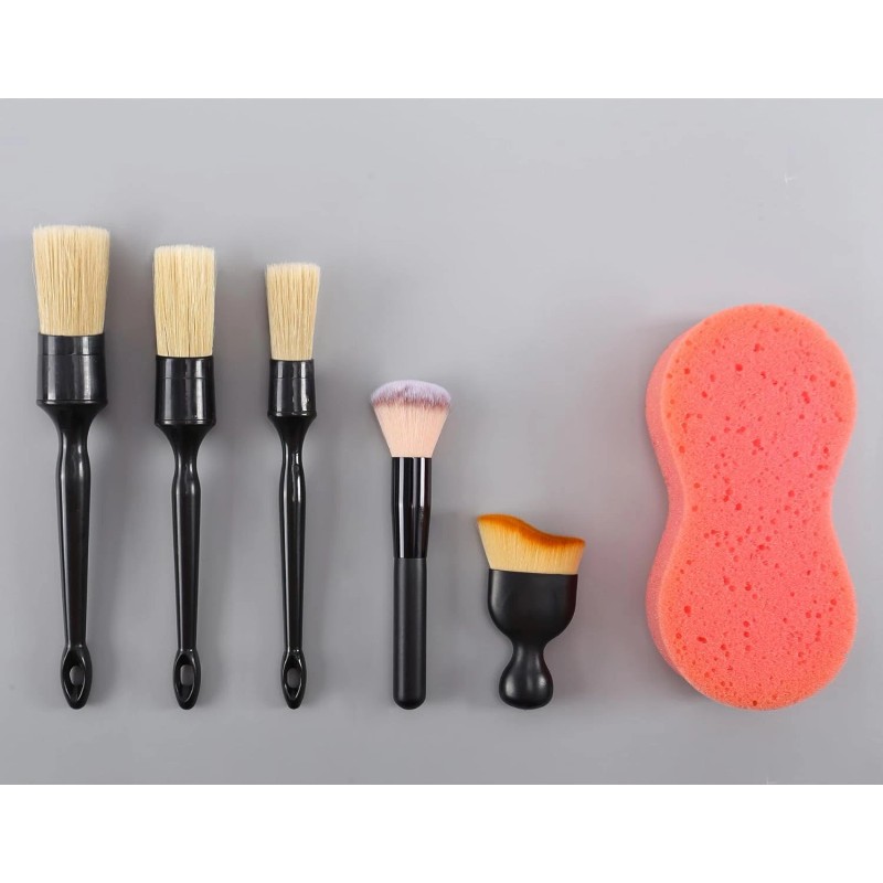 - [Multi- functional & Various Size] 6PCS car detailing kit, 1 set to meet your cleaning needs. Excellent completion of all works required for external and internal details! Safe for car, truck, SUV, RV, motorcycle, & more. This brush set can also be used for washing your kitchen, toilet, floor, yacht, etc.
