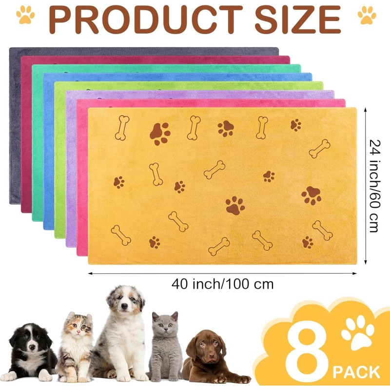 - Package Quantity: the package comes with 8 pieces of pet towels for dogs, which are easy to use and replace, measuring approx. 40 x 24 inches/ 100 x 60 cm, suitable for medium and small pets; The bath towel with classic footprints and bone prints are designed for pets, for personal use or as a gift to a friend