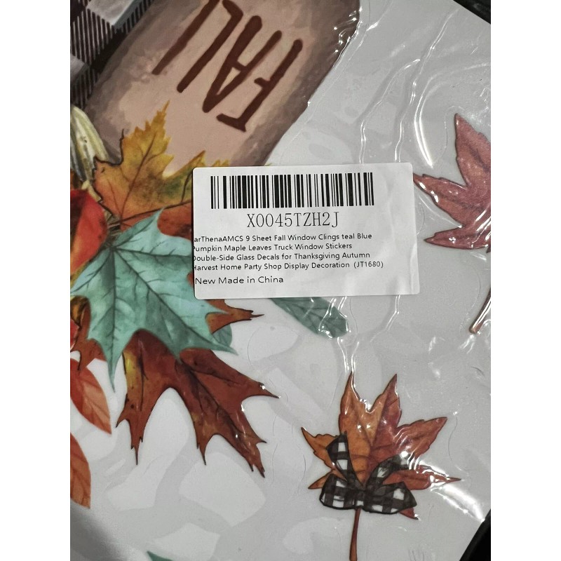 The set includes 9 sheets of watercolor maple leaves in a leaf shape, with a total of 9 pieces. The clings are perfect for all ages and can be used for holiday and seasonal décor. The special feature of these clings is their reusability, making them a great choice for yearly autumn decorations.