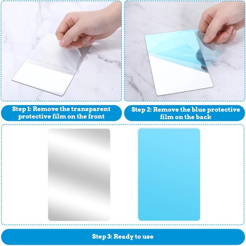 - Protective Film: Each acrylic mirror is equipped with a double-sided protective film to prevent scratches and damage during transportation. Be sure to remove the protective film before use to get a clear and perfect mirror surface