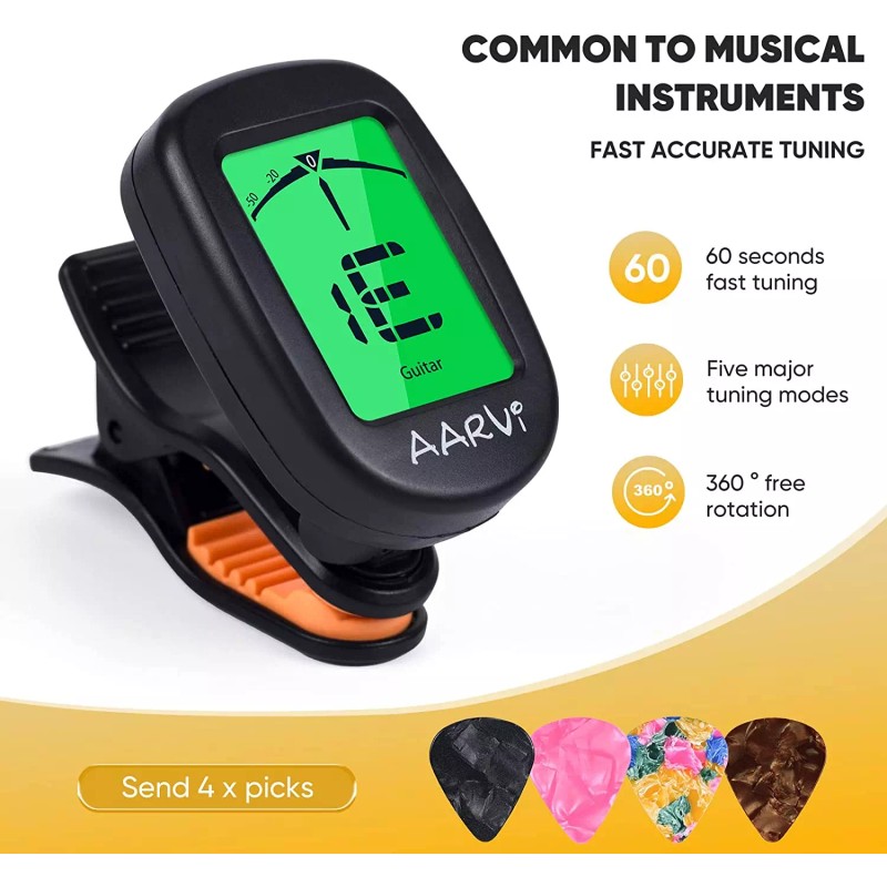 - Rápido y preciso: el procesador avanzado del afinador garantizará que su instrumento esté afinado con tonos estándar de forma precisa y rápida.