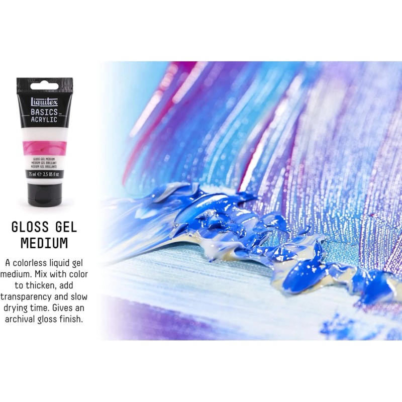 - Gloss gel is a thick, transparent medium for mixing with Acrylic paint to improve color blending, extend paint volume and drying time and increase paint transparency