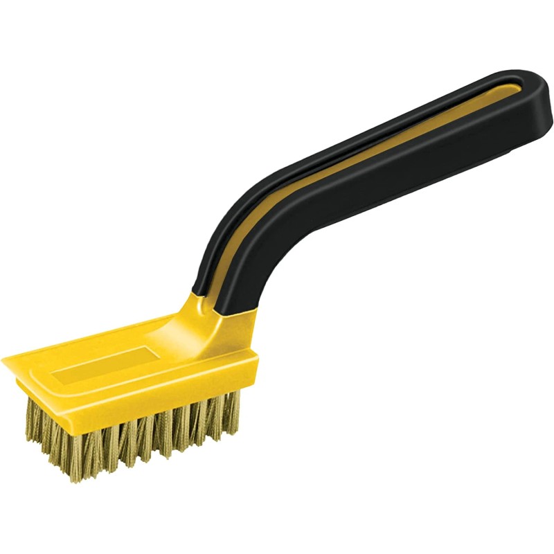 The Soft-Grip Wide Brass Stripper Brush is designed with non-sparking brass bristles suitable for metal burnishing and removing rust, scale, and paint. It also has a light-duty plastic scraper end for convenient cleaning of residue. This sturdy brush features an ergonomic soft-grip handle with offset to protect your hand from scratches while scrubbing.