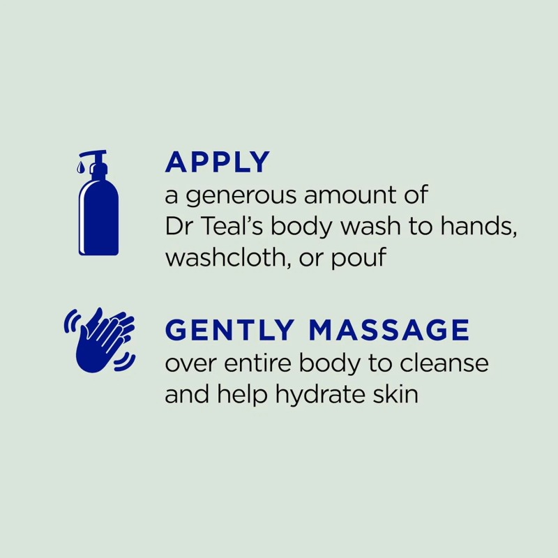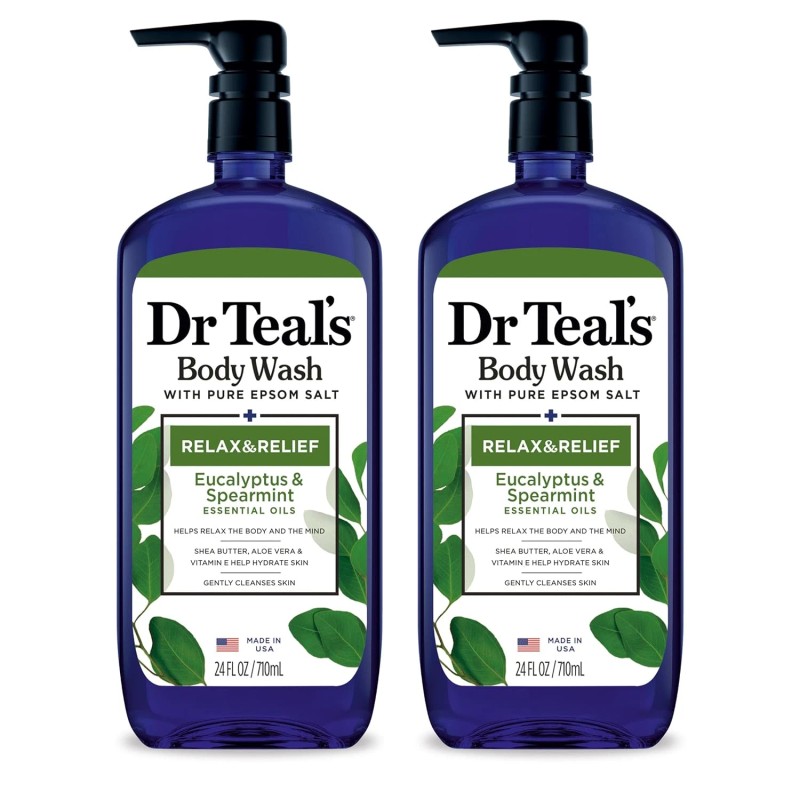 Bring relief and rejuvenation to your body and mind with every shower when you use Dr Teal’s Relax & Relief Body Wash with Eucalyptus, Spearmint & Pure Epsom Salt. With shea butter, aloe vera, and vitamin E, this nourishing blend will moisturize and cleanse your skin while also relaxing your mind with essential oils. Eucalyptus and spearmint help to awaken the mind and reduce stress. Rejuvenate your mind and soothe your body with a Pure Epsom Salt infused body wash. Use it as part of your daily cleansing routine or mix it with one of your favorite Dr Teal’s Pure Epsom Salt Soaks to create a powerful exfoliant.
