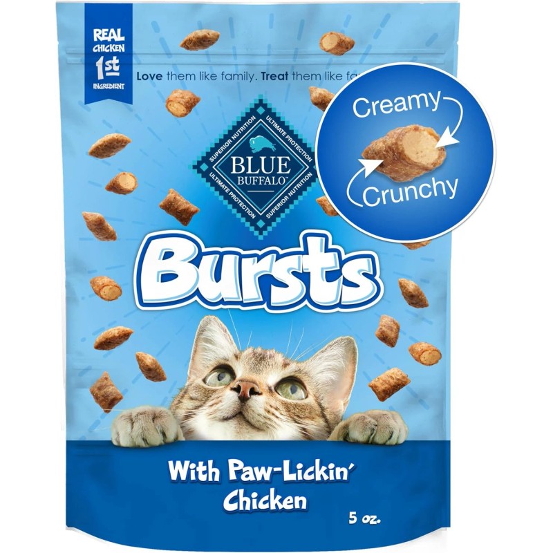 - Contains One (1) 5-oz bag of BLUE Bursts Crunchy Cat Treats, Chicken