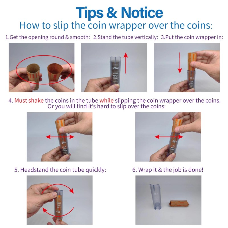 - Super Easy to Use: This Coin Organizer is easy to use like a coin counter machine. You just need to put the coins in, then slip the coin wrappers over the coins and wrap them. The job is done. Great helper for you to get the loose change out from your coin bank or coin jar. Sort and wrap them to take to the bank.