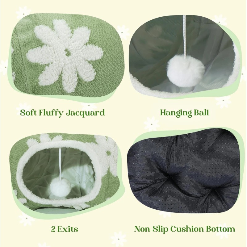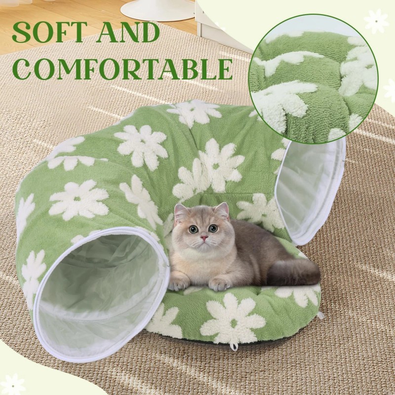 - 2-in-1 Cat Tunnel Bed: Upgrade your pet’s playtime and relaxation with our cat tunnel, a must-have for playful kittens, rabbits, ferrets, and other small pets. Watch as your pet zooms through the tunnel for active playtime, then curls up in the cat circle bed for well-deserved rest. The versatile setup works greatly for single pets or multi-pet families, giving play and nap haven for happy pets