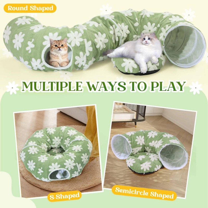 - Interactive Fun Toy: Our adaptable cat tunnel can be shaped into a circle, S - shape, or semi - circle to match your cat's playful moods. The play tunnel comes with hanging balls artfully placed at the entrance, perfect for several cat play together. Endless Fun Awaits!