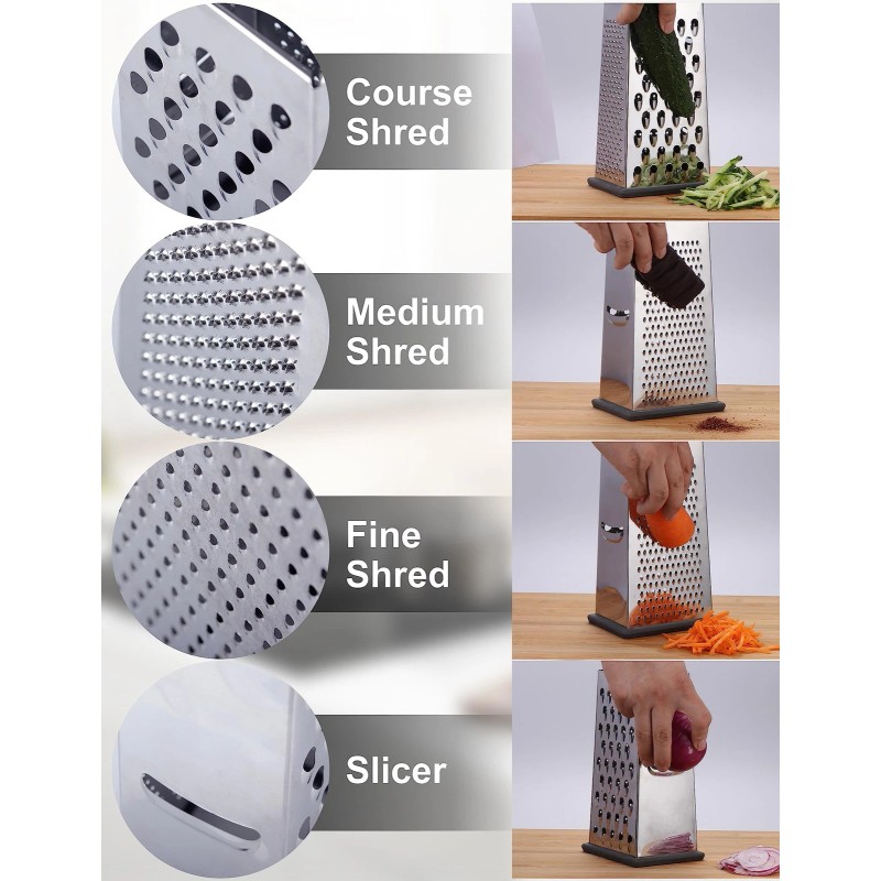 Cheese Grater, Box Grater for Cheese Stainless steel Vegetable Slicer Food Shredder 4-sided Convenience Gadgets for kitchen