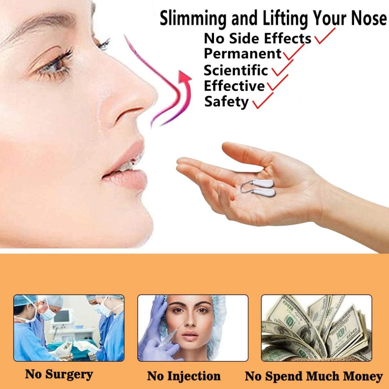 - Seguridad y comodidad: Herramienta para adelgazar la nariz con un diseño especial que no se cae, utiliza un método científico que garantiza un efecto seguro, duradero y sin efectos secundarios, y el corrector nasal no dañará la nariz.