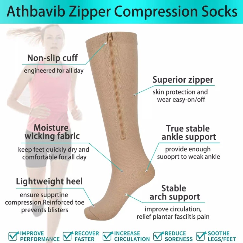DISEÑO DE CREMALLERA: Puedes ponértelos y quitártelos fácilmente sin problemas. Calcetines de compresión con cremallera y forro de protección para evitar que se abran durante el movimiento durante el día. La tela interior debajo de la cremallera protege la piel del roce contra la cremallera. ¡Prueba estos calcetines de compresión con punta cerrada y disfruta de comodidad durante todo el día ahora!