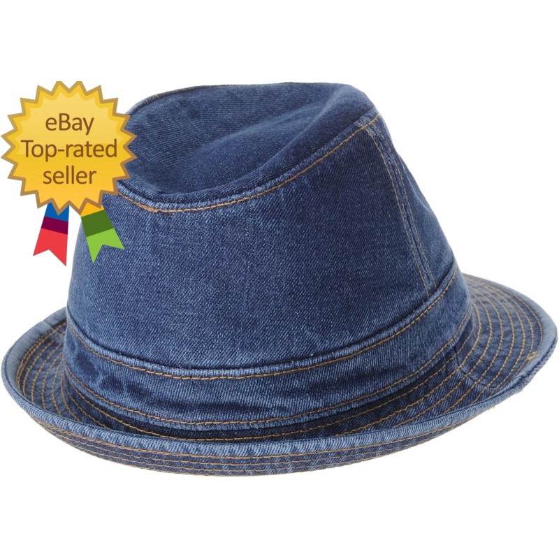 Denim Fedora Hat Plain Stitch Washed Short Brim Packable
