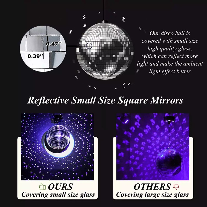 - 2. Measuring 12 inches in diameter, this high-quality disco ball is made with clear mirrors for a flickering effect.