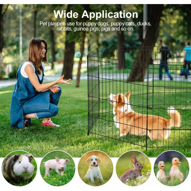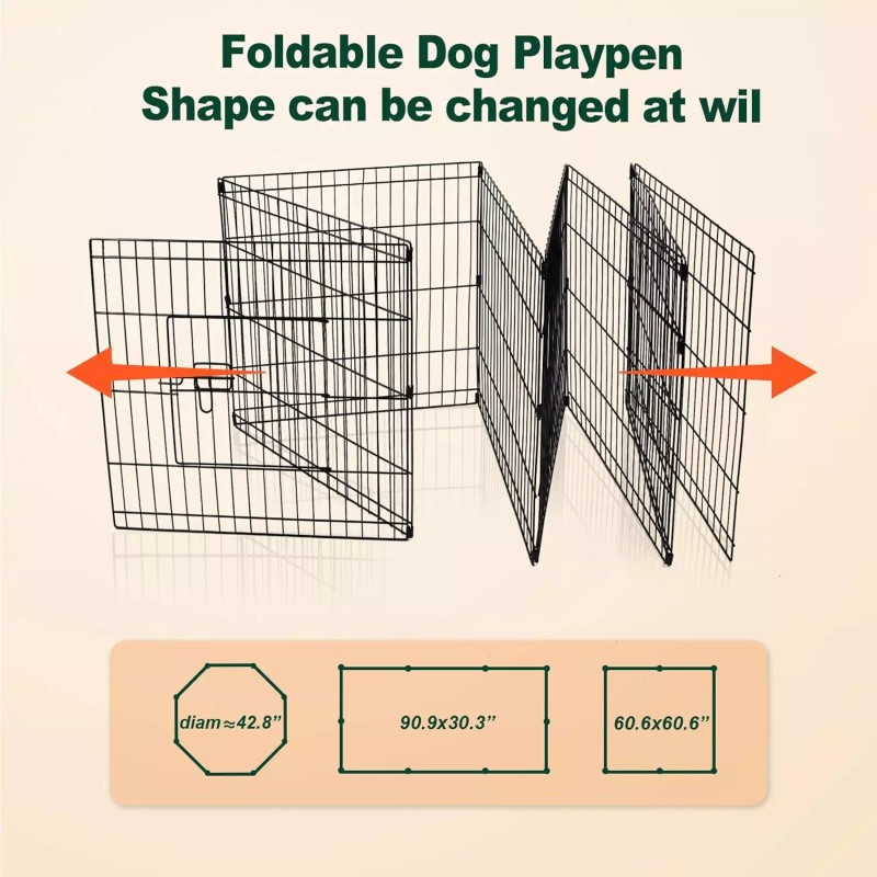 - 【24H and 24W Foldable Pet Playpen】The sports dog fence has 8 connection panels (each panel is 24H and 24W inches), making it easy to set up and remove the puppy pet folding fence. It can be folded flat for easy storage and transportation. No installation tools required, quick installation in 5 minutes