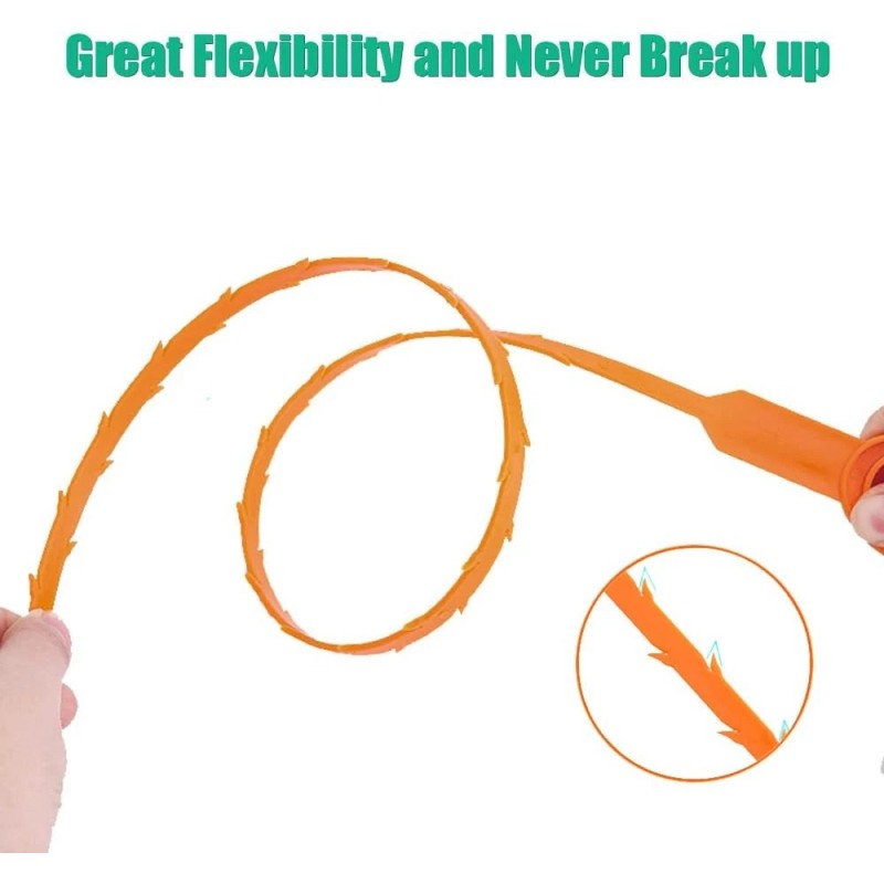 - Soft & Flexible Barbed Wand:Plastic drain clog remover is designed with Multi-tooth and the polypropylene is soft enough to bend in many kinds of strainers and pipes, the flexible barbed wand could easily hook the hair and debris