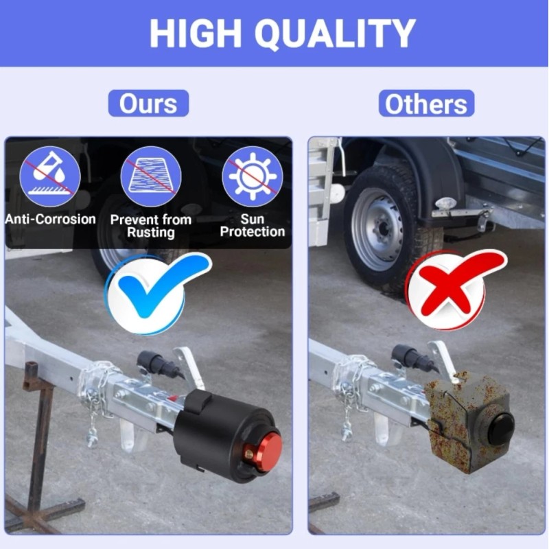 • High Quality Durable The trailer lock 2 5/16 is made of hardened steel, extremely durable and secure. The black exterior is coated with a durable powder coating for excellent rust and corrosion resistance and weather resistance. Make sure the trailer locks are kept in good condition to provide lasting protection for your trailer