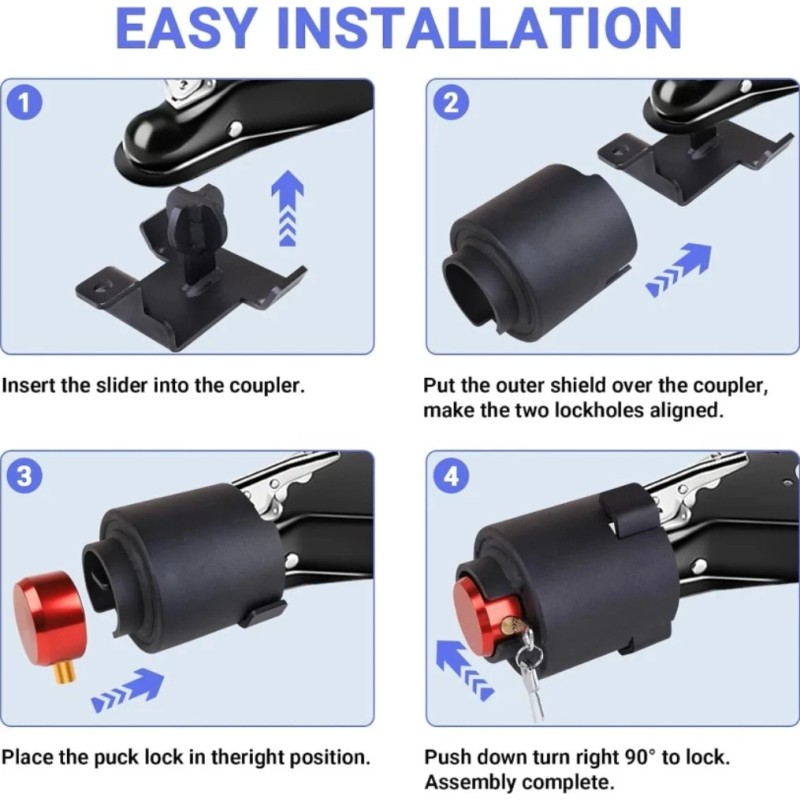 • Compatibility of trailer coupler lock This customized lock is only applicable to specific 2-5/16 inch couplers, A-frame coupler (black),A-frame coupler (silver),Adjustable coupler, Please make sure to carefully check if your coupler type and size match.