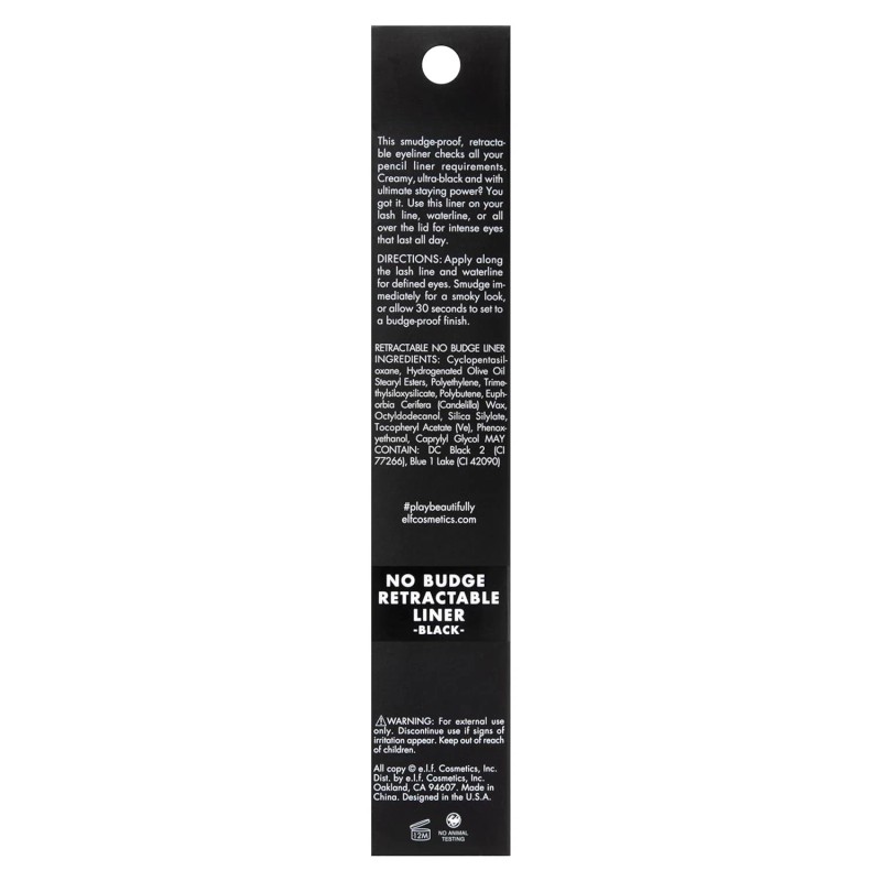 - ULTIMATE EYE PENCIL: The e.l.f. No Budge Retractable Eyeliner is a waterproof, retractable eyeliner that checks all your pencil liner requirements.