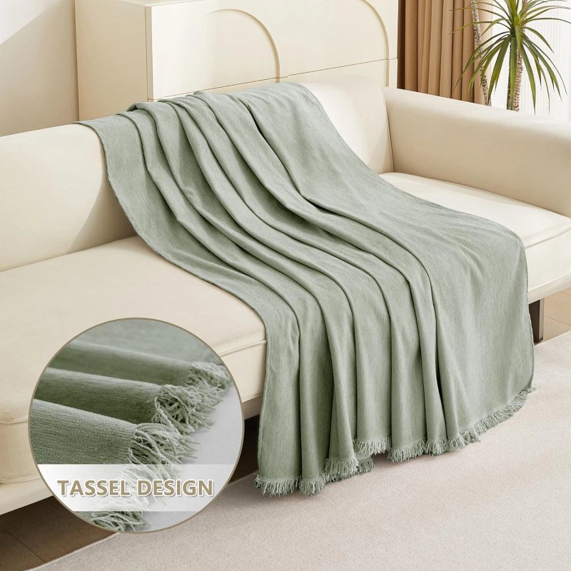 Easy Fitted Couch Cover for Dogs Stain Resistant Couch Cover Sage Sofa Covers for 2 Cushion Couch Multi-Use Sectional Couch Cover for Loveseat Universal Tassel Sofa Throw 91"X 118"