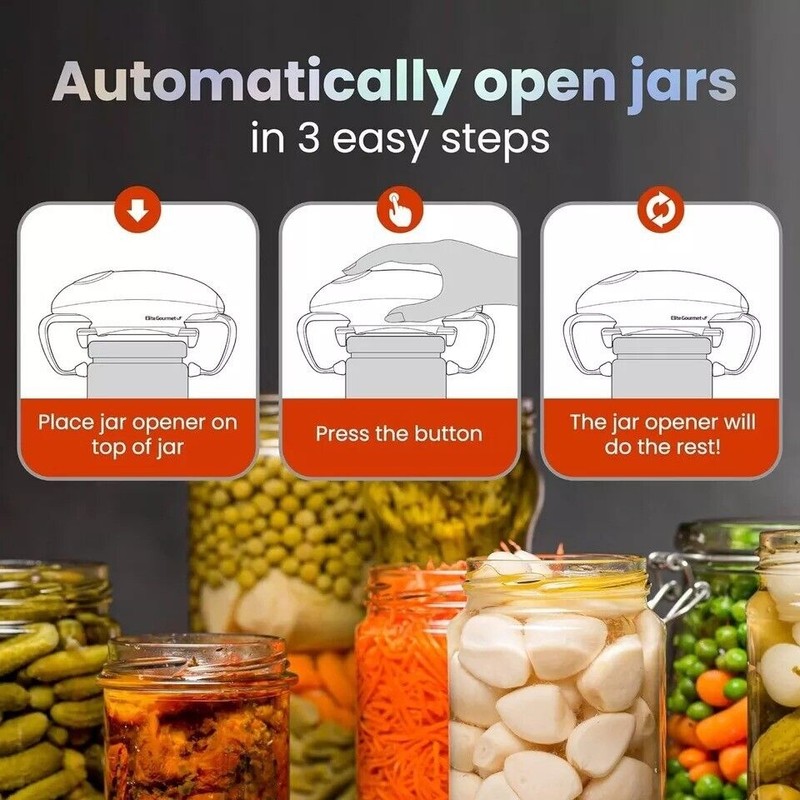 - HIGH POWER TORQUE ACTION – Automatically remove lids from jars with ease. The high-powered torque action of the Elite Gourmet Jar Opener makes removing pressure sealed tight jar lids and even bottle caps a breeze.
