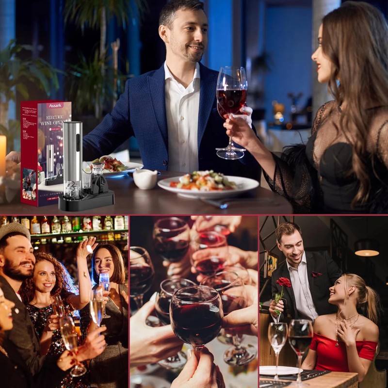 Funtional design , all- in-one set and elegant package, Assark electric wine opener gift set will be a perfect gift choice for family or friends on birthday, anniversary,'s Day, Housewarming, and , etc