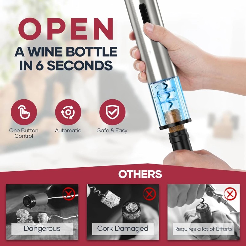 This set with everything you need to enjoy wine. Just press the button and you can open the wine bottle effortlessly.