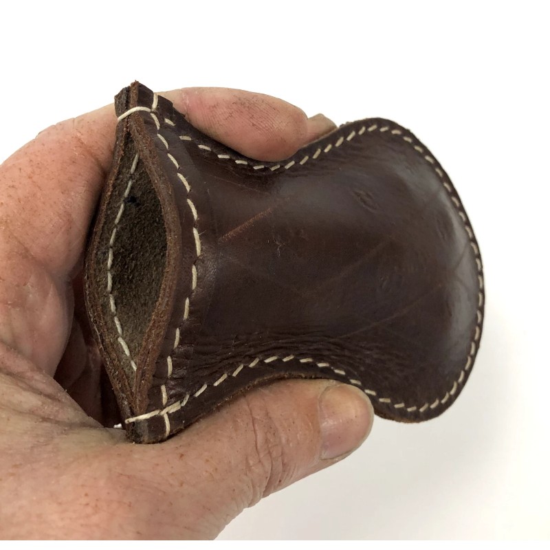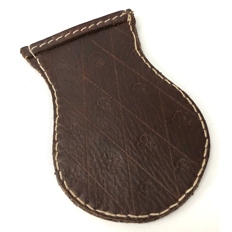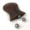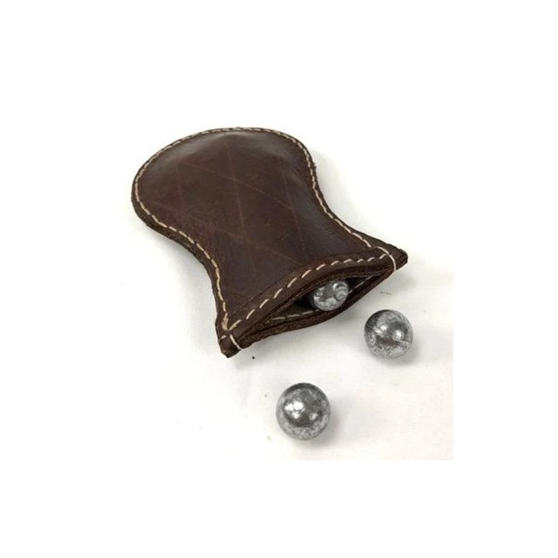 Made of high quality leather with a fancy embossed pattern, this ball bag is the perfect accessory for any muzzleloading enthusiast. The bag is designed to hold round balls up to .75 caliber. The opening is reenforced so as to keep the pouch closed until squeezed in order to open the spout. Keeps balls from rolling around inside one's possibles bag or pockets during shooting trips.