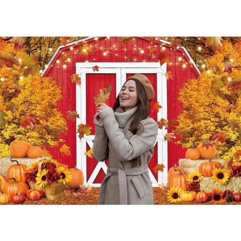 Fall Harvest Backdrop 7X5Ft Red Farm for Thanksgiving Baby Shower Party Decor
