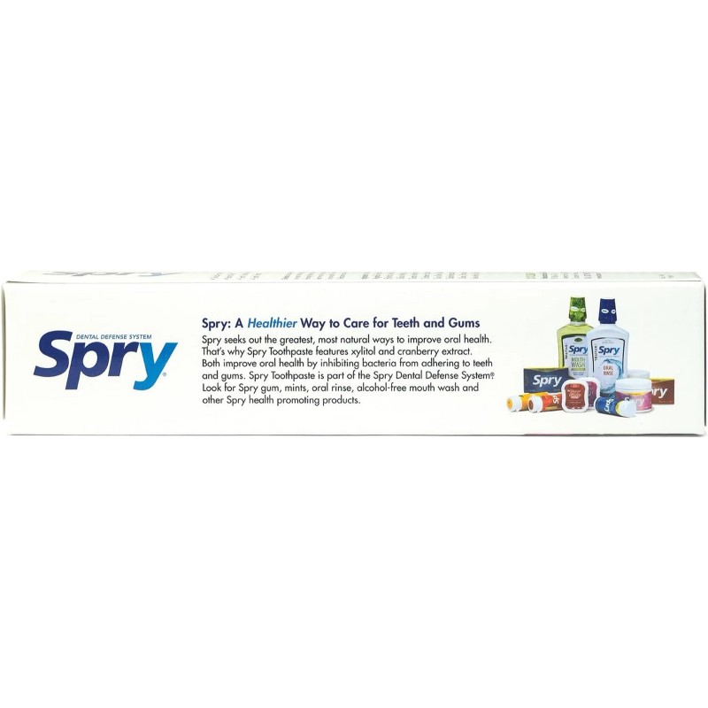 The newly formulated Spry Toothpaste features the greatest, most natural ingredients to ensure you have a healthy mouth. It is rich in xylitol, a natural sweetener, which is clinically proven to improve oral health by managing the microbiome in the mouth in the healthiest way possible. Xylitol does this by inhibiting cavity-causing contaminants from sticking to teeth and gums. Xylitol reduces the formation of contaminants biofilm, the home where contaminants like to grow. Xylitol also moisturizes, helping to cleanse your mouth and reduce dry mouth discomfort. This Spry Toothpaste features cranberry extract and Aloe for optimal health of oral tissue and teeth. The new formula is free of parabens, a kind of preservative, so you can have the best end product. The frosty flavor with xylitol is sure to satisfy your taste buds.