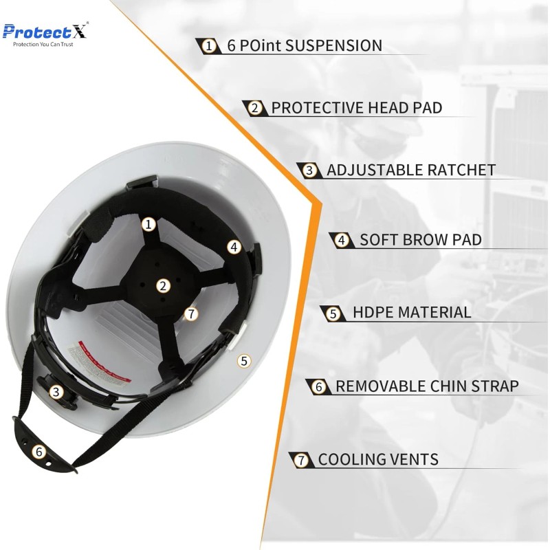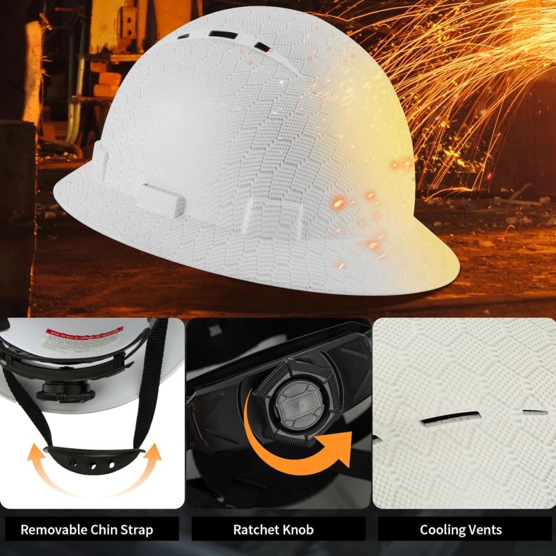 - SUPERIOR PROTECTION: This full brim construction hard hat helmet molded from high impact penetration resistant HDPE materials, strong, yet ultra-light. Superior quality provide excellent head protection, protect your head from mishaps and accidents.